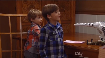 At the church, he is seen with his brothers writing in the guest book, when Felix walks up and takes away the pen. The boys start getting impatient so Epiphany takes them out to the courtyard to play. They are then seen in the church at their seats when they hear music, which they think means the wedding is starting, so they go to the bridal room and drag their mom out. When they get out there, they wonder why Jake isn't there yet. To keep the out of the way, Patrick sends them to their seats. They return a few minutes later ask their mom when the wedding is going to start and Elizabeth says not yet. Seeing that they are getting more impatient, Epiphany interjects and offers to take them to get ice cream with Felix and Sabrina. On Thanksgiving, Elizabeth tells Monica that Aiden and Cameron decided to spend the day with her Gram.