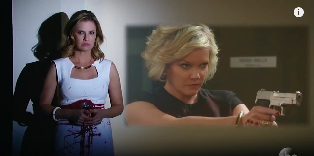 - Held at gunpoint and threatened (along with her cousin, Olivia Quartermaine) by Vince and two other henchmen of Julian [May 13, 2013]